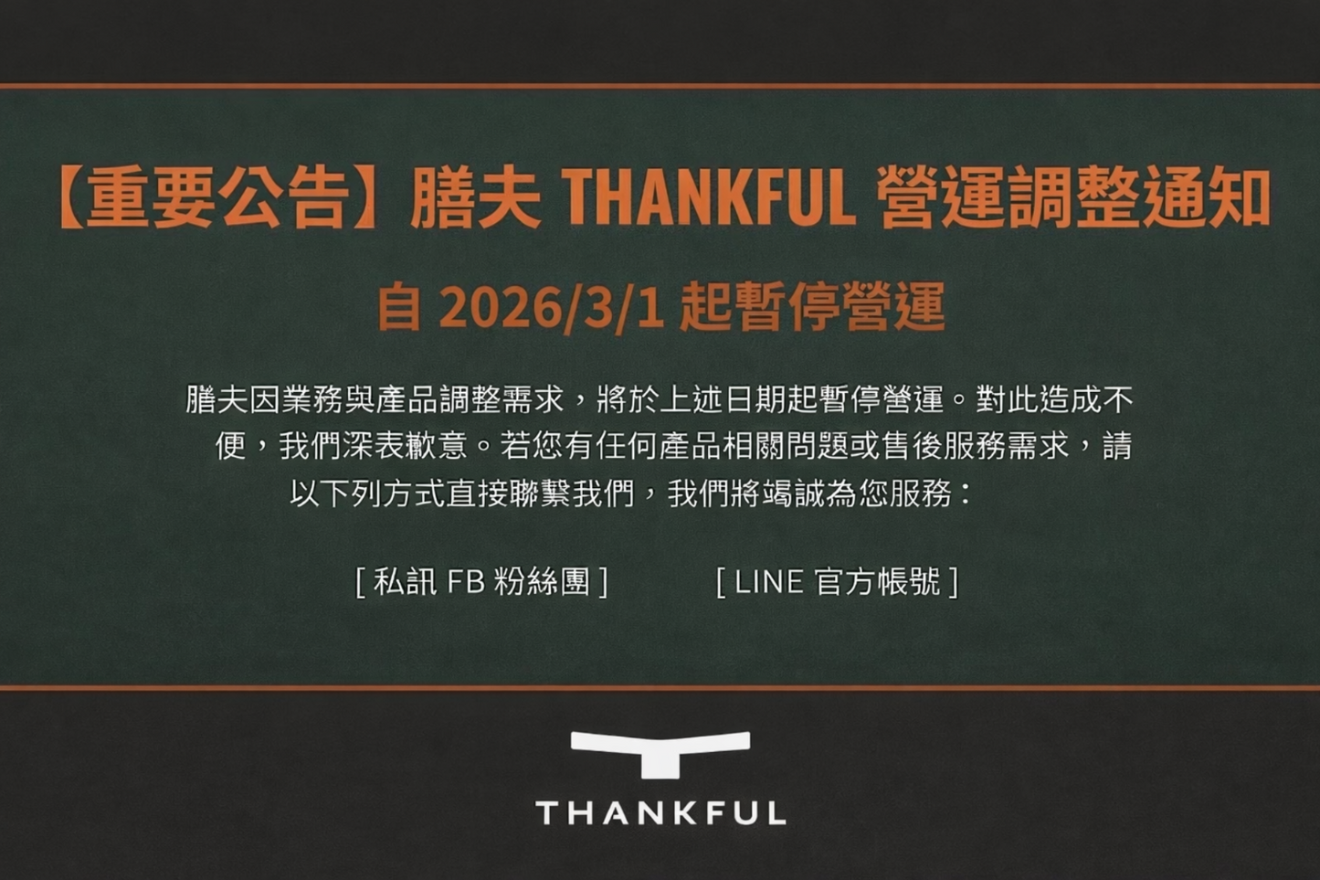 「THANKFUL」和膳夫,不只是巧合的諧音,我們相信, 人人都可以成為「膳夫」,他們像是職人,為家人、另一半、父母、來客, 為所有親愛的人煎條魚、烤塊肉,而感謝的心,是最題味的佐料。